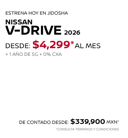 * Nissan Mexicana, S.A. de C.V. puede modificar en cualquier momento y sin previo aviso esta información, consulta disponibilidad, términos y condiciones con tu Distribuidor Autorizado Nissan. La información proporcionada en el piso de venta del distribuidor autorizado Nissan, se entenderá como la correcta, veraz y final. ** Las imágenes son únicamente de referencia, algunas versiones no se encuentran disponibles en México o pueden cambiar según la versión. Consulta nivel de equipamiento y disponibilidad por versión en tu Distribuidor Autorizado Nissan.
